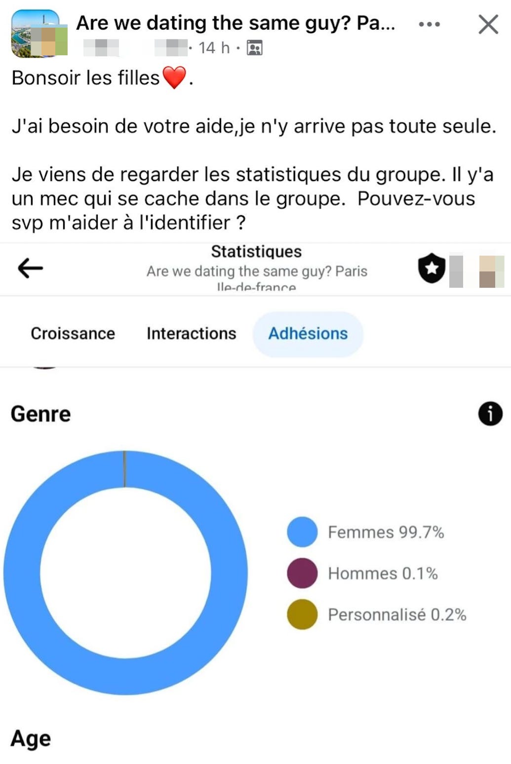 Tellement intrigué, j'ai décidé de m'y plonger moi-même. Et quand je dis « plonger », comprenez que j'ai infiltré le groupe, à la manière d'un bon vieux roman d'espionnage mais version 2024. J'ai emprunté le compte Facebook d'une amie (dont je tairai le nom, parce que la fondatrice de ce groupe ne badine pas avec la confidentialité comme vous pouvez le constater ci-dessous).