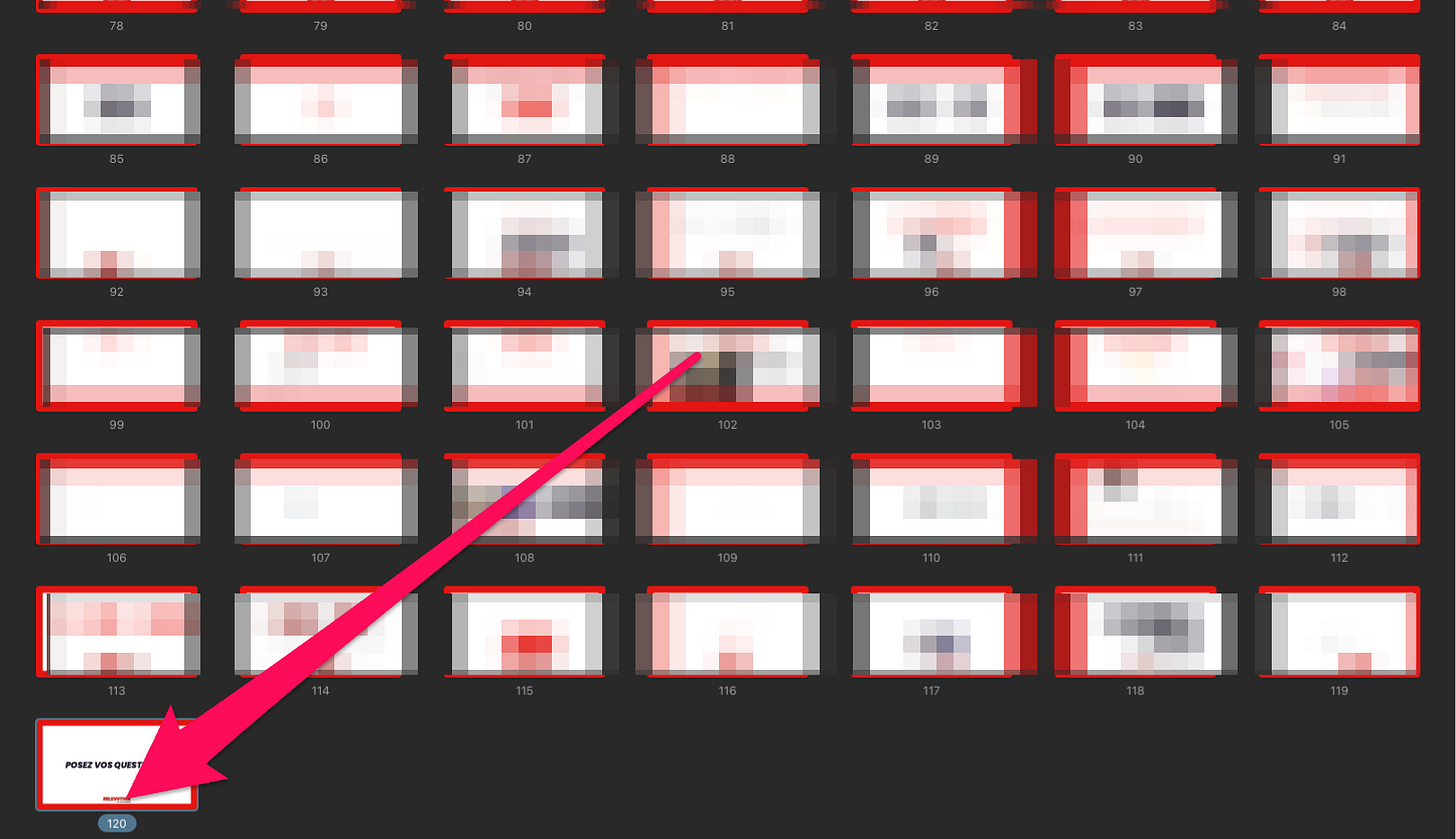 Parce que jâai bossĂ© comme un malade pour que cette prĂ©sentation soit bĂ©ton. Regarde, jâai mĂȘme 120 slides, soigneusement prĂ©parĂ©es.